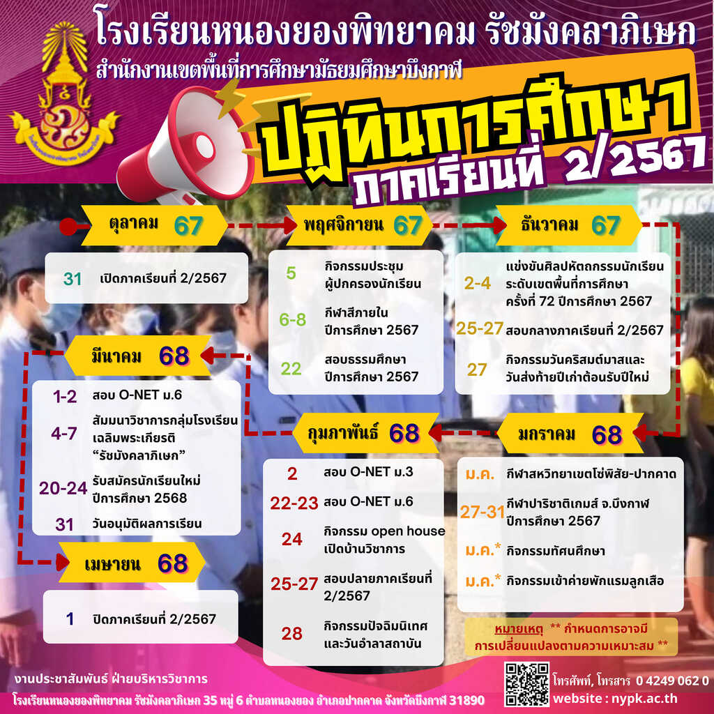 ปฏิทินการศึกษา ภาคเรียนที่ 2 ปีการศึกษา 2567